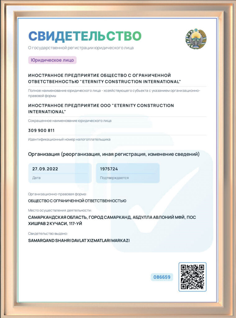 Certificate of state registration of a legal entity